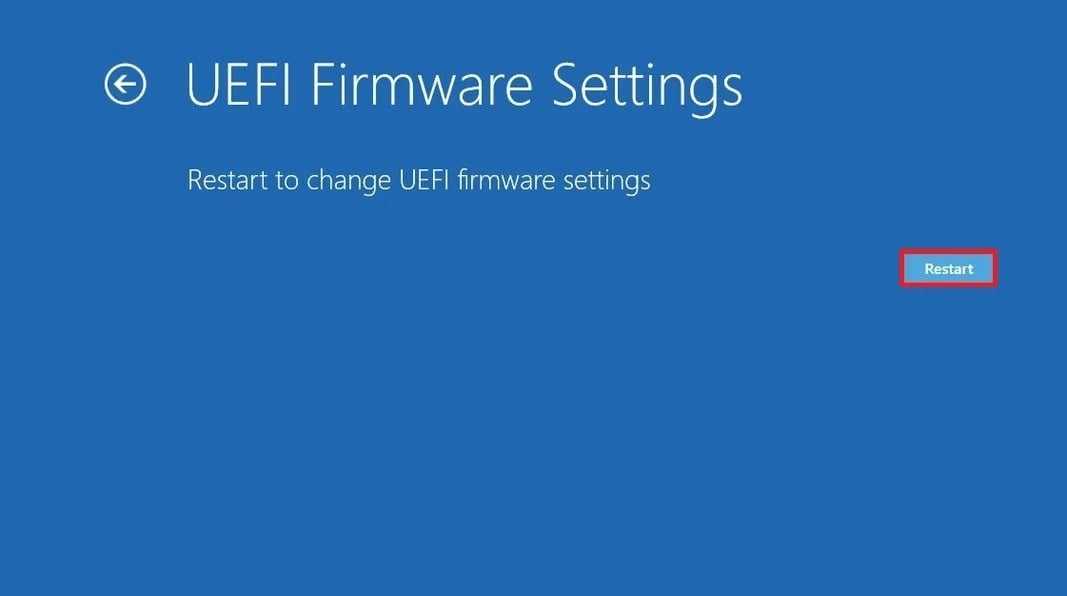 7. On the UEFI Firmware Settings screen, click on the Restart button to restart the computer and start the firmware change.
