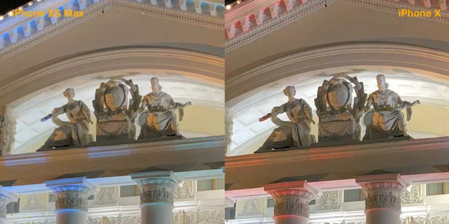 Я делал несколько кадров одновременно на X и XS, и на них было видно, как хорошо новая камера справляется с яркими источниками света вроде ламп, фар и солнца. Лампы, которые казались размазанными пятнами на снимках с X, оказывались яркими, но аккуратными кругами на кадрах XS.