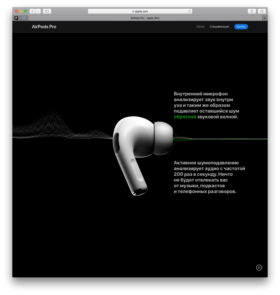 Активное шумоподавление в AirPods Pro.