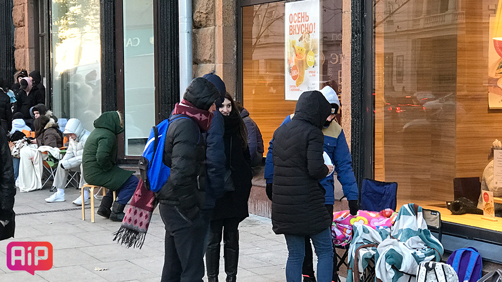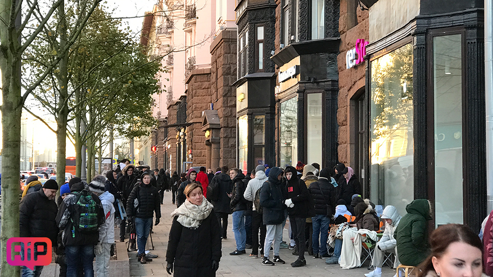 2 ноября в Москве было холодно, до -3°С. Но и это не останавливало настойчивых поклонников Apple.