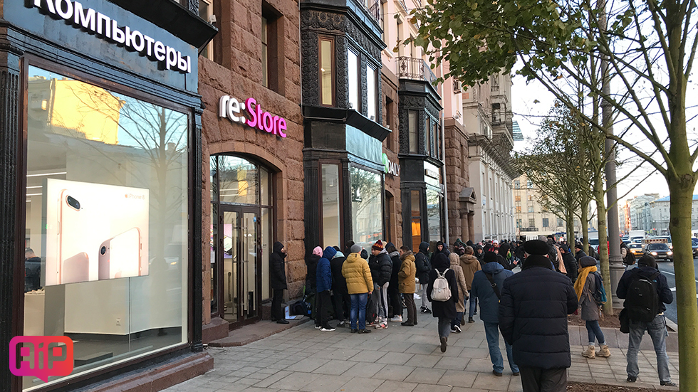 К утру 2 ноября у магазина организовалась живая очередь в количестве более чем 500 человек. Такой ажиотаж объясняется не только малым количеством iPhone X, поступившим в Россию в рамках первой партии, но и тем, что этот магазин re:Store единственный откроется ровно в 8 утра по московскому времени 3 ноября и начнет продавать iPhone X. Именно здесь желающие купить iPhone X смогут сделать это раньше других.