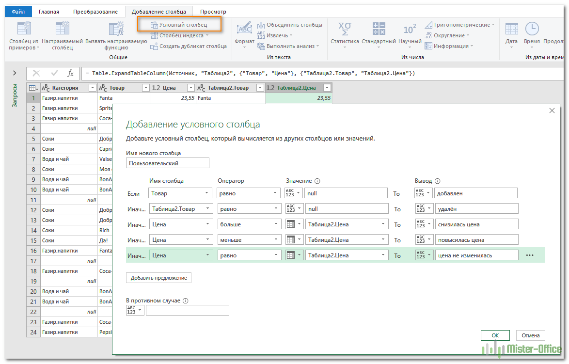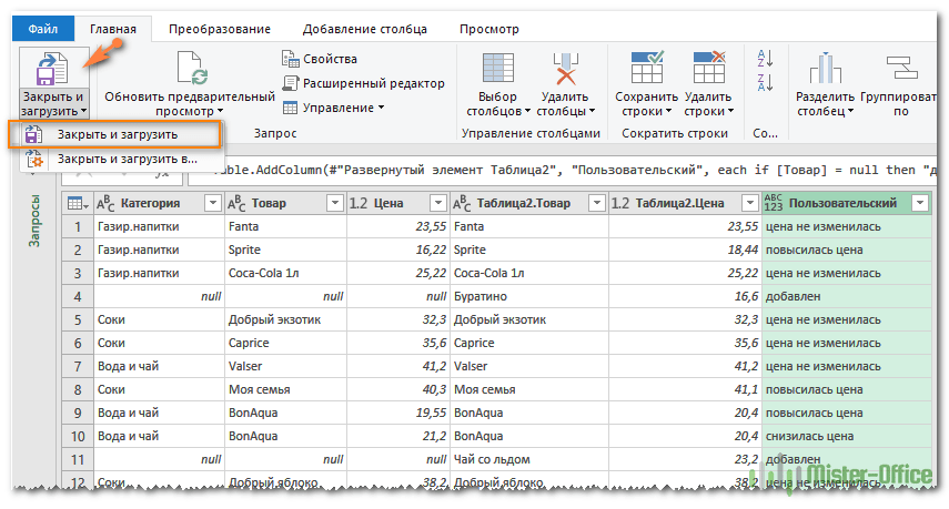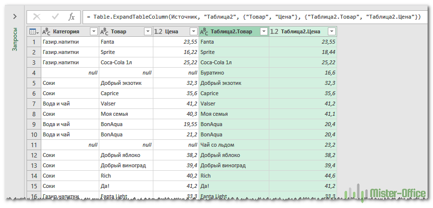 После нажатия кнопки Insert справа от колонки с наименованиями товаров будет вставлена дополнительная, которая будет озаглавлена так же, как и столбец результата. Сюда будут записаны все найденные значения цены, причем в виде формулы. При необходимости вы сможете ее подправить либо использовать в других таблицах.