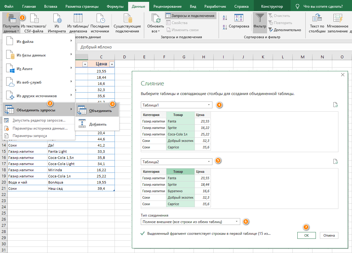 Во вспомогательной колонке вы увидите объединенные данные таблицы: