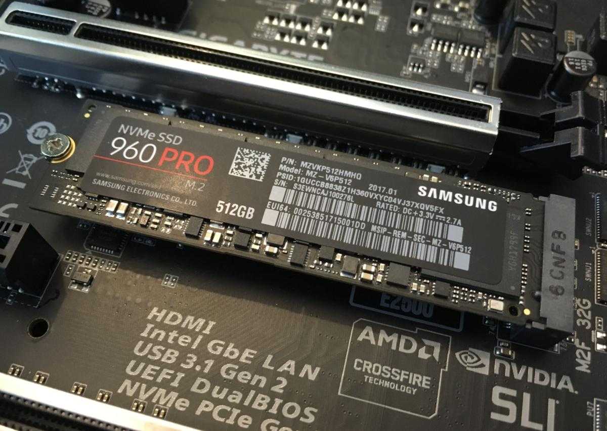 The Samsung 960 Pro NVMe SSD in an M.2 slot.