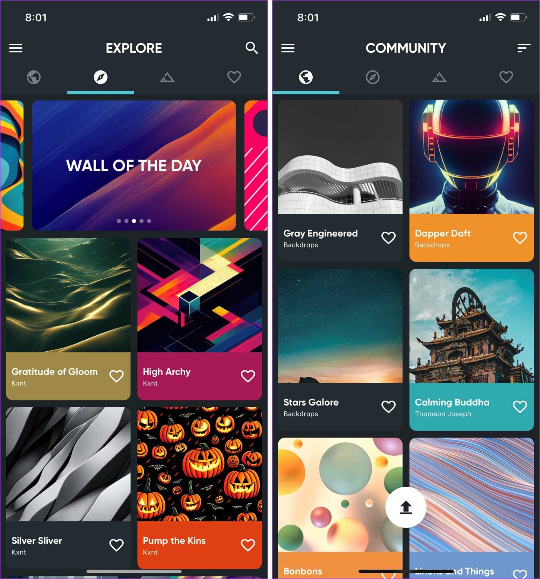 Фоны — самые популярные приложения для обоев для iPhone. В отличие от Vellum, в Backdrop больше материала и минимум обоев, благодаря чему вы не теряете фокус на значках приложений на главном экране. Хотя у них есть большое количество категорий, нам нравится вкладка «Исследовать», которая предоставляет бесконечный список новых обоев. Фон также дает вам новые обои в разделе «стена дня».