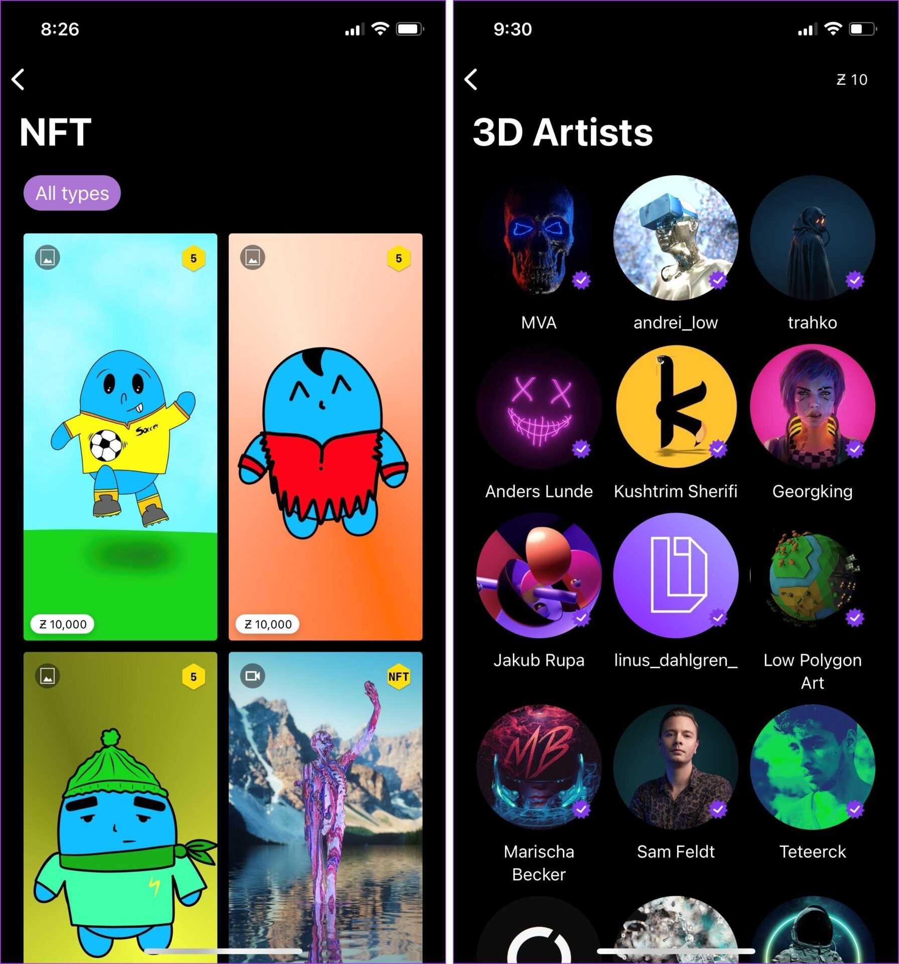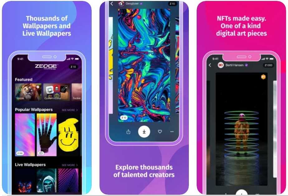 Zedge — один из старейших и самых популярных сайтов с обоями в Интернете. И их приложение для iPhone соответствует своему наследию. Существует обширная коллекция обоев, включая живые обои, в нескольких категориях из разных источников в Интернете. Но вот интересная часть Zedge — он объединяет NFT и обои.