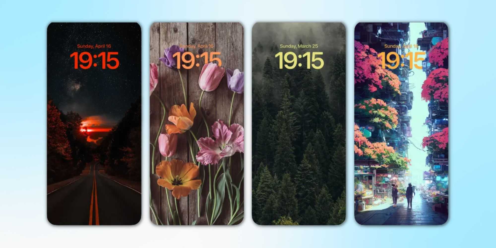 Отличная функция — двойные обои — вы можете использовать пару фиксированных обоев для домашнего экрана и экрана блокировки, чтобы создать интерактивный опыт.