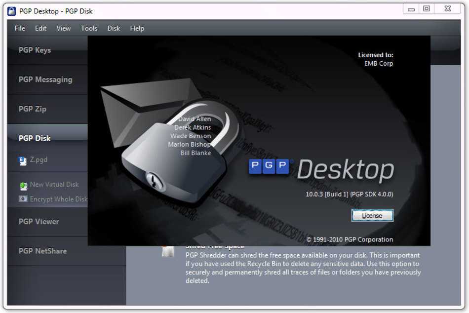 - создание виртуальных дисков, для доступа к которым требуется PGP-ключ;