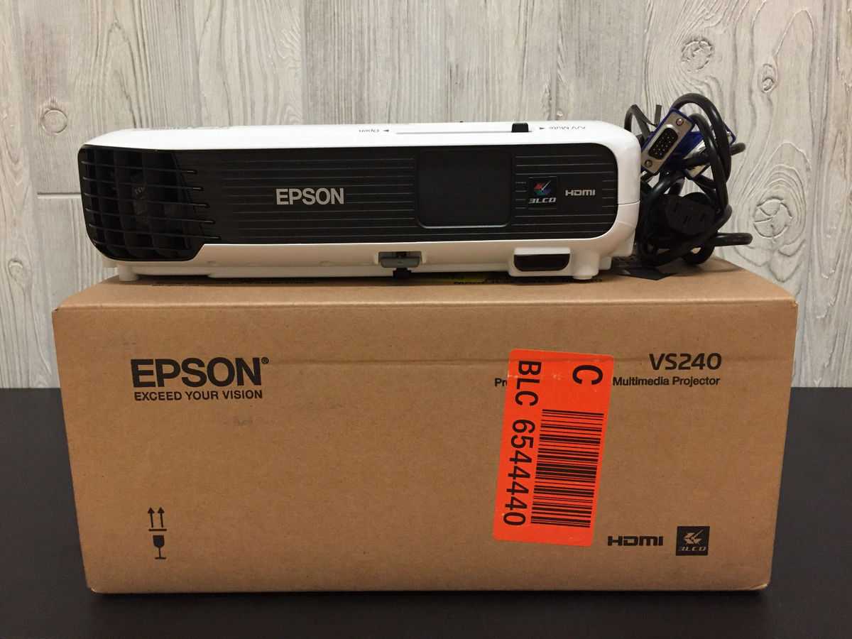 Замыкает тройку лидеров устройство Epson VS240. При стоимости около 21 000 ₽ обеспечивается 3000 лм яркости, что делает возможным его использование в освещённой комнате. Срок службы лампы заявлен до 10 тыс. часов, цвета изображения яркие, настройка устройства – проста и интуитивно понятна. Правда, максимальное разрешение матрицы – всего 800 х 600 пикселей.