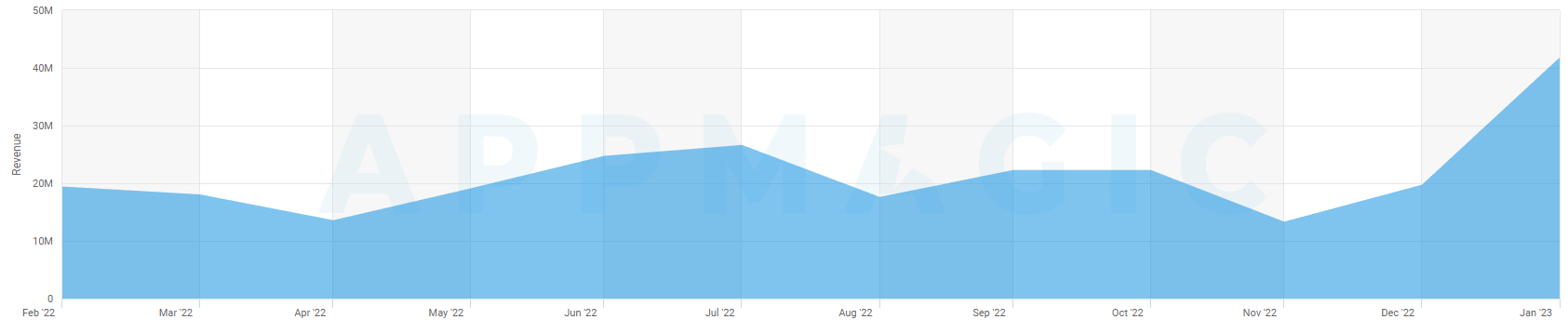 Что более важно: проект показывает достойную выдержку. С момента появления в 2021 году месячный заработок игры не опускался ниже $13 млн.