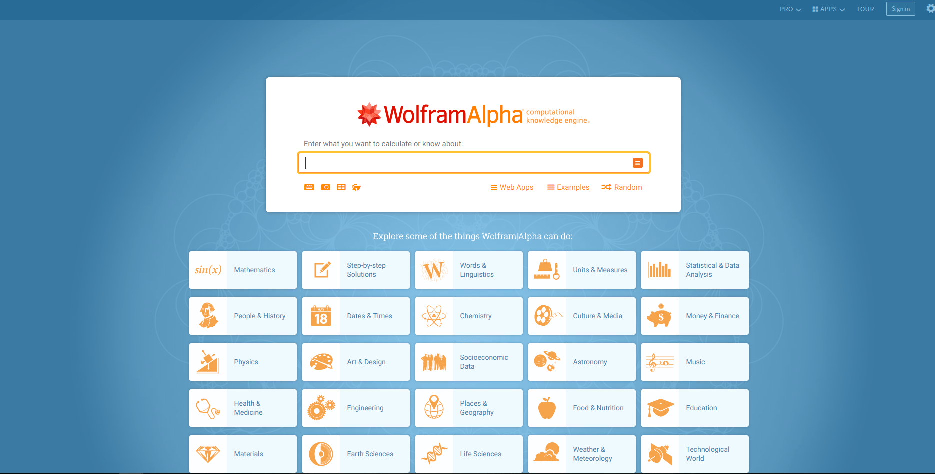Хотя WolframAlpha можно использовать для поиска информации, связанной с развлечениями, домом и работой, она в первую очередь предназначена для учителей и учеников. Это еще более очевидно в профессиональной версии поисковой системы.