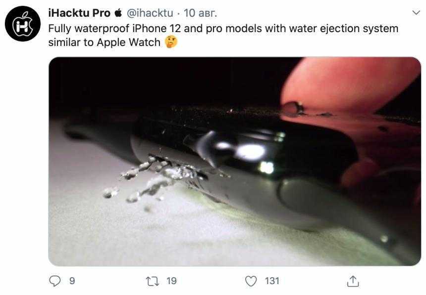 Про улучшение влагозащиты корпуса iPhone 12 ничего не известно, будет ли оно вообще. Но пророчат появление механизма выдува жидкости из динамиков, как в Apple Watch, т.е. при помощи специальных частот звука.