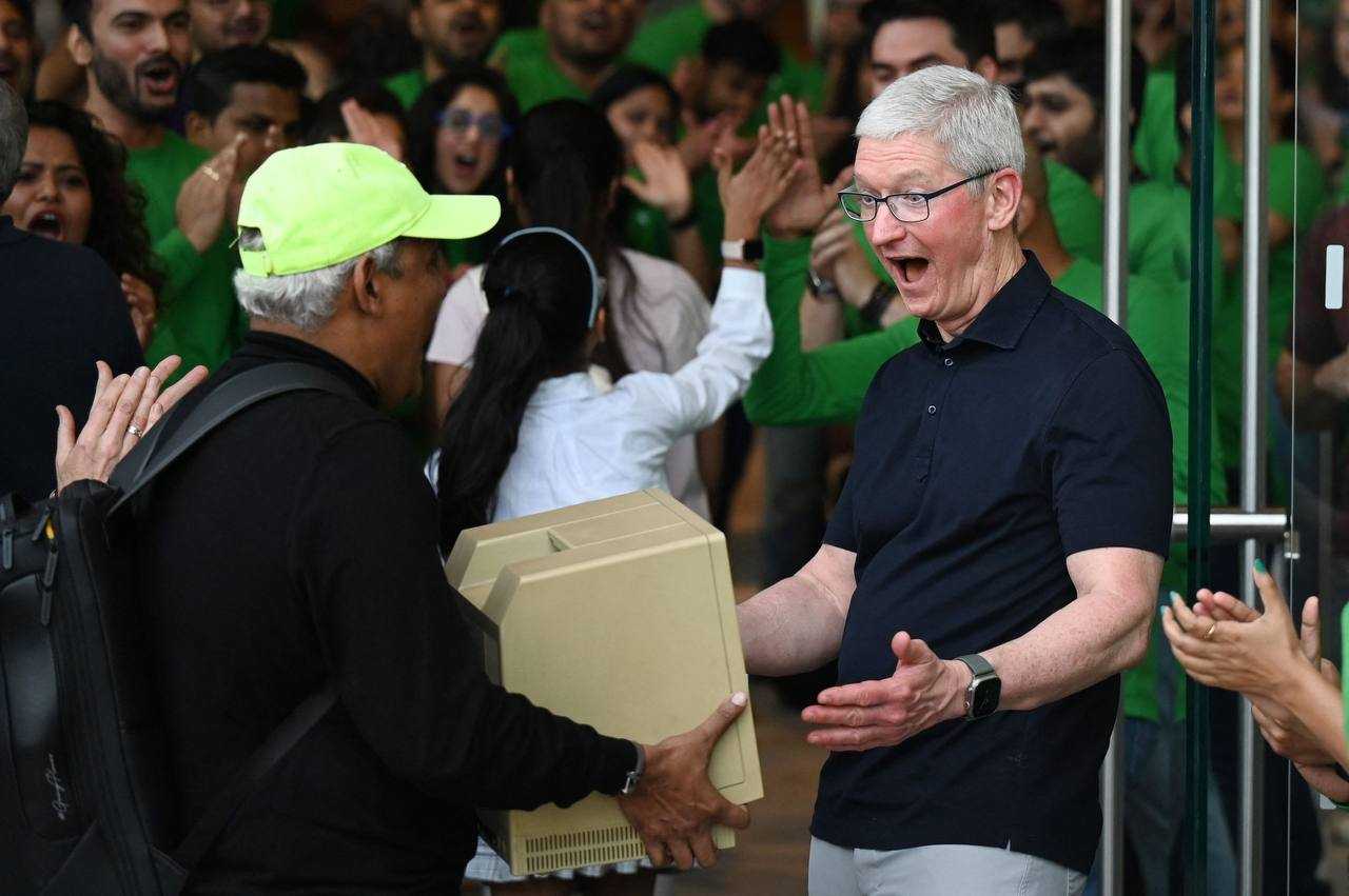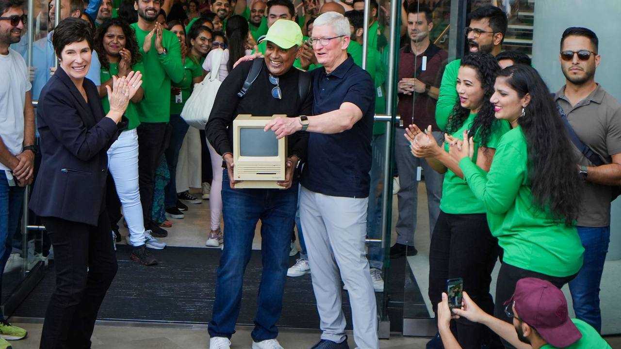 А в числе первых посетителей оказался, похоже, один из самых давних фанатов Apple в Индии – он принёс на открытие магазина в Мумбаи Macintosh SE (1987 года выпуска), Тим Кук очень удивился такому атрибуту