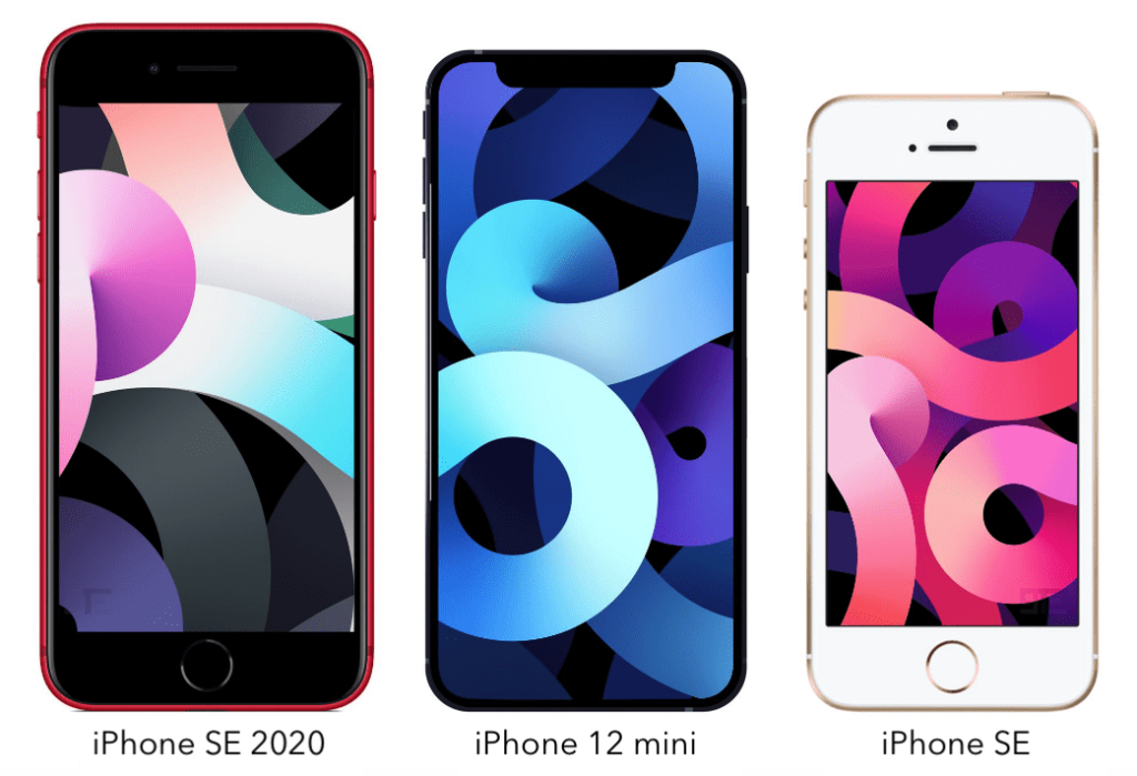 Как можно увидеть на изображении, mini оснастили 5,4 дюймовым дисплеем, а SE — 4,7 дюйма.