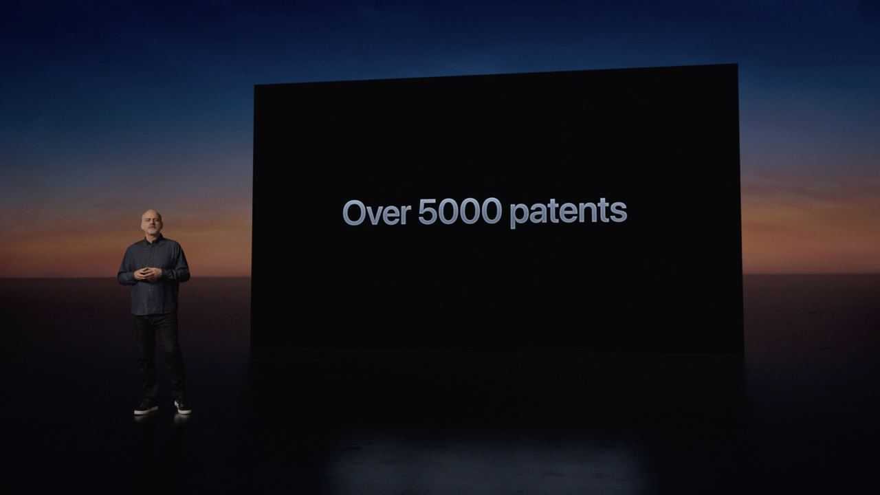 Момент с презентации, где рассказали о регистрации более 5000 патентов для разработки Apple Vision Pro