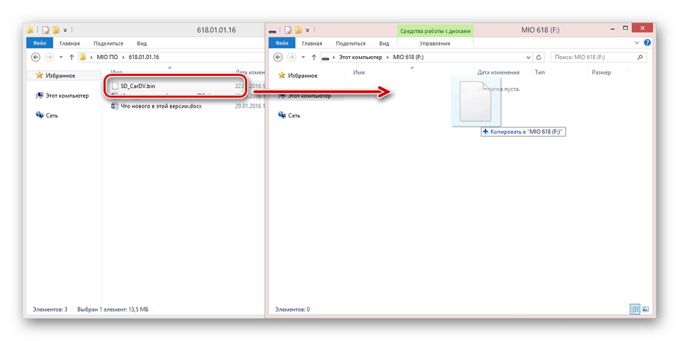 Скопируйте скачанный файл в формате BIN на флеш-накопитель. Поместить его нужно в корневой каталог без дополнительных папок.