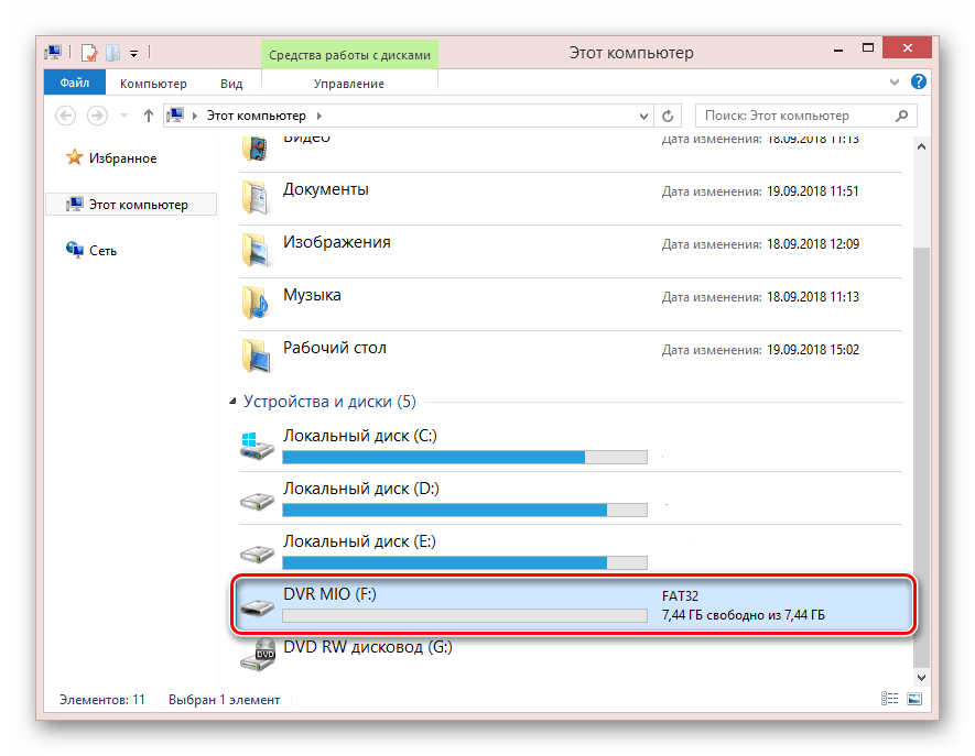 Подключите к ПК флешку от видеорегистратора. Можно использовать как стандартный носитель информации, так и любую другую microSD небольшого объема.