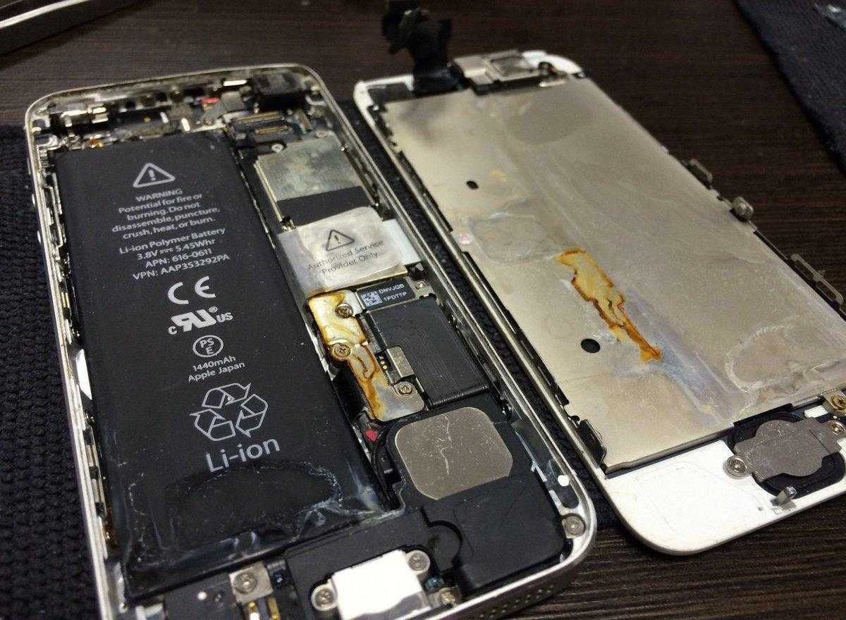 Но не стоит думать, что сразу после попадания жидкости во внутрь устройства оно сразу же выйдет из строя. Вовсе нет! При попадании влаги на контакты или внутренние схемы, начинается процесс коррозии, который не происходит мгновенно, а может затянуться на длительное время, вплоть до месяцев! Под воздействием тепла и электричества (батарея в устройстве есть и все время подключена) происходит процесс электрохимической коррозии, что и приводит к разрушению контактов внутри устройства.