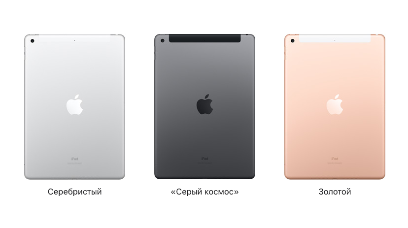На выбор 3 цвета — «серый космос», серебристый и золотой (как и у предыдущего iPad 7).