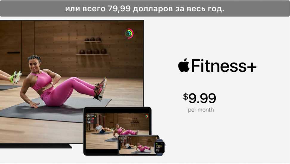 Стоимость месячной подписки Fitness+ составляет 9.99 долларов, а при оплате на 1 год — $79.99. При этом вся семья до 5 человек включительно сможет использовать этот сервис.