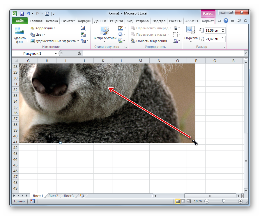 Теперь необходимо отредактировать фото, вставленное в Excel, привести его к «надлежащему» виду. Действовать нужно так: