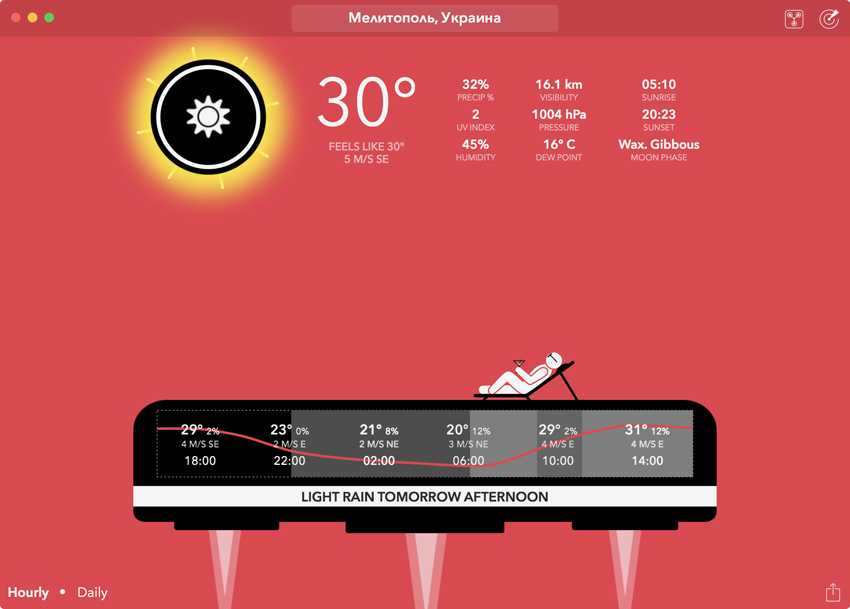 Определенно привлекает внимание и внешний вид приложения как на iPhone, так и на Mac. Через минималистичные иллюстрации приложение показывает ощущения от текущих погодных условий и точно делает это со вкусом