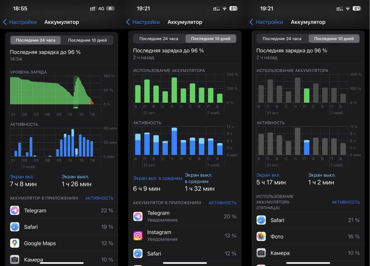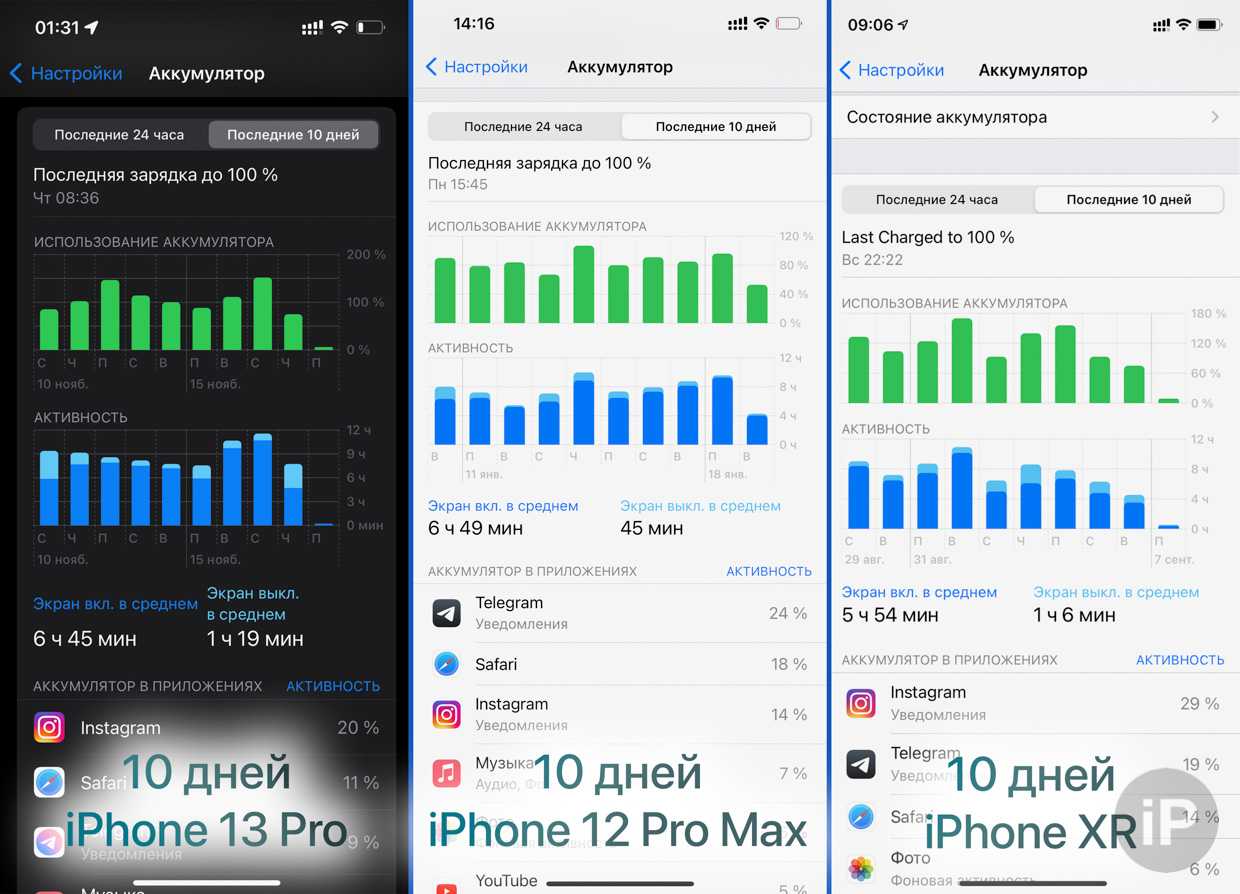 Чтобы было по времени работы сразу после покупки с iPhone 13 Pro и другими. Среднее количество зарядов за день увеличилось.