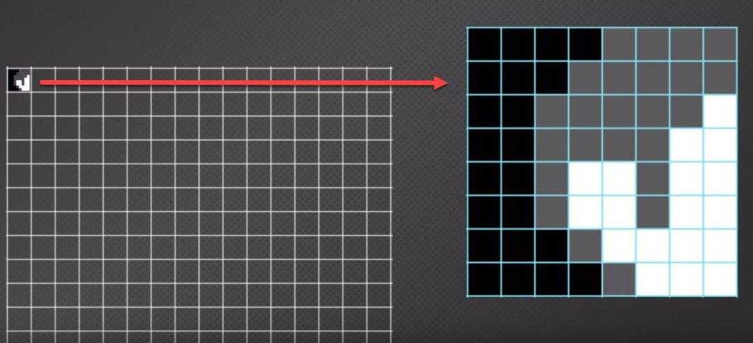 Каждая клеточка — это мини-квадратик 8 на 8 пикселей.