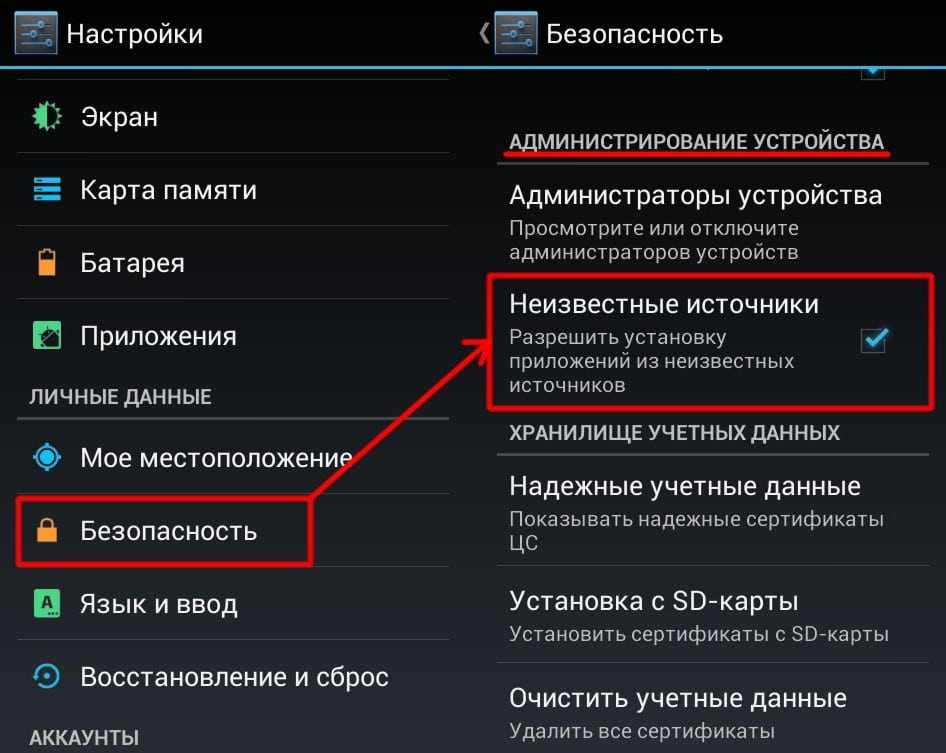 - В настройках девайса пользователю необходимо разрешить инсталляцию софта из неизвестных источников.