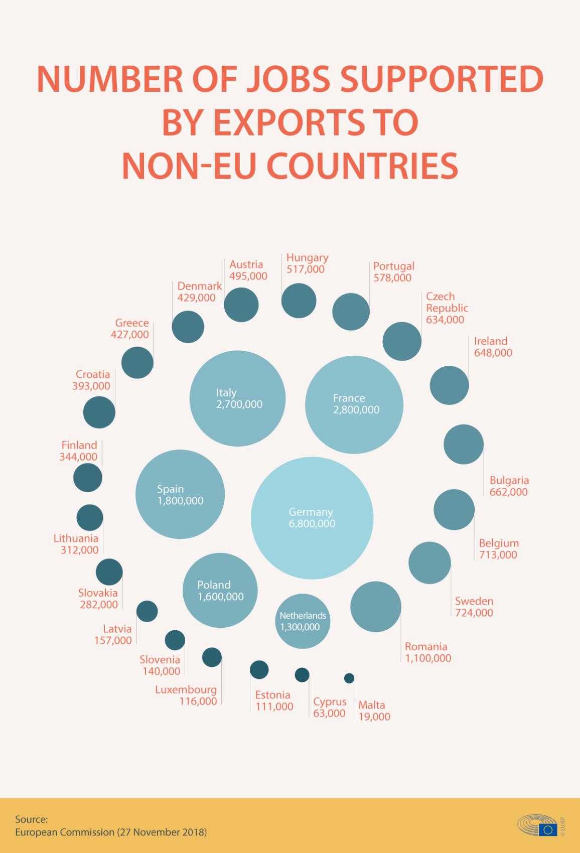 Кроме того, импорт товаров и услуг из-за пределов ЕС заставил европейские компании быть более конкурентоспособными, предлагая потребителям больший выбор и более низкие цены. Пятая часть рабочих мест, поддерживаемых экспортом, находится в государстве-члене, отличном от страны-экспортера.Интерактивная карта: Сколько рабочих мест поддерживает экспорт в вашей стране?Кроме того, импорт товаров и услуг из-за пределов ЕС заставил европейские компании быть более конкурентоспособными, предлагая потребителям больший выбор и более низкие цены.