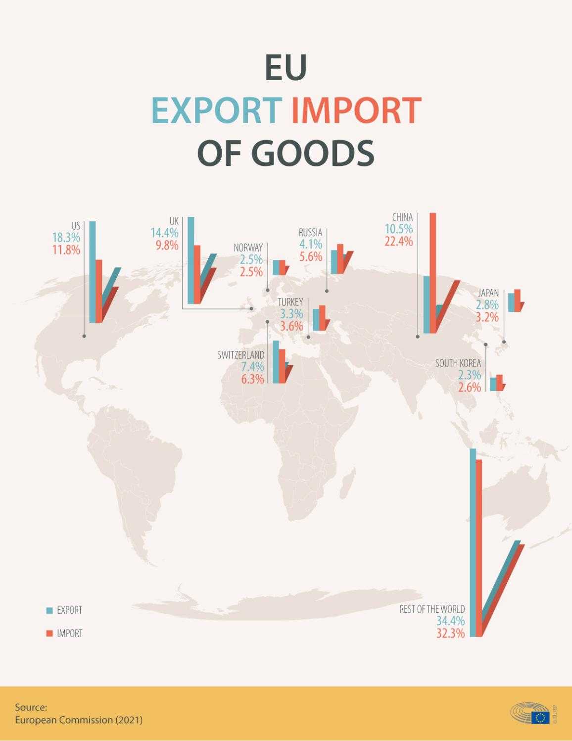 Инфографика об импорте и экспорте товаров в ЕС в 2020 году