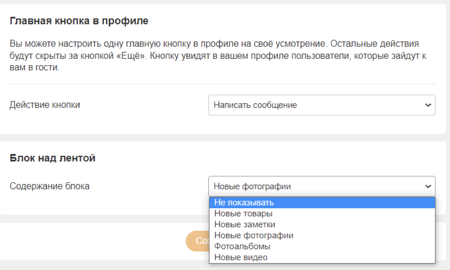 С помощью этой опции можно закрепить над лентой новые товары, фотографии, альбомы, видео или заметки.