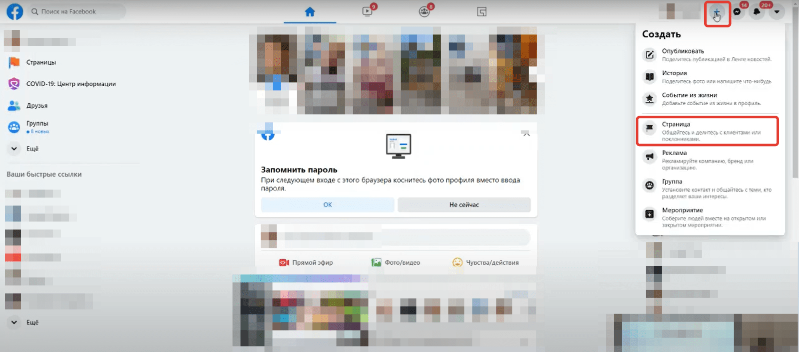 Для создания бизнес-страницы понадобится личный аккаунт в Facebook. Если вы уже зарегистрированы, войдите в свой профиль и в правом верхнем углу нажмите плюс, а затем выберите вкладку «Страница».