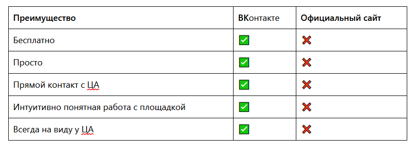 Преимущества группы в ВК для продаж перед официальным сайтом.