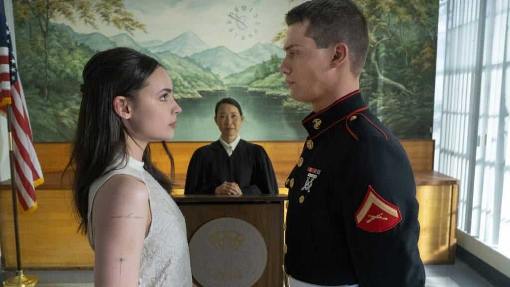 София Карсон и Николас Голицын в фильме «Пурпурные сердца» (2022) (Netflix)