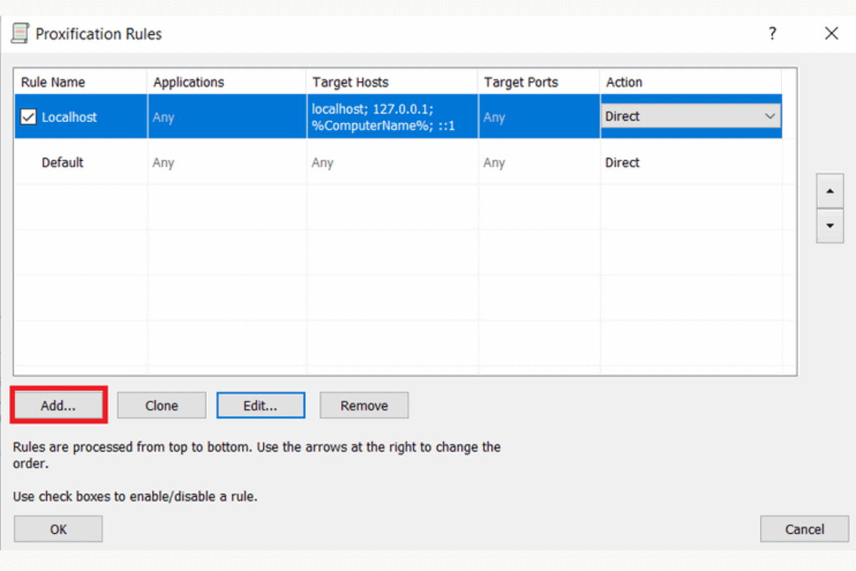 Proxifier как добавить исключения