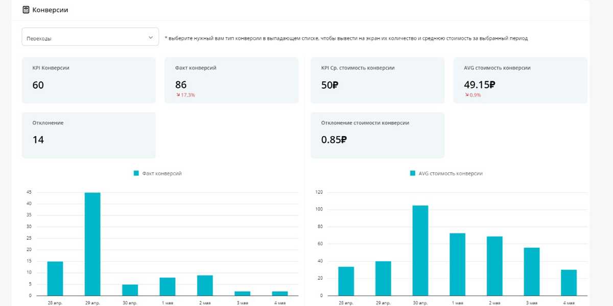 Статистика конверсий в отчете, сформированном с помощью DataFan