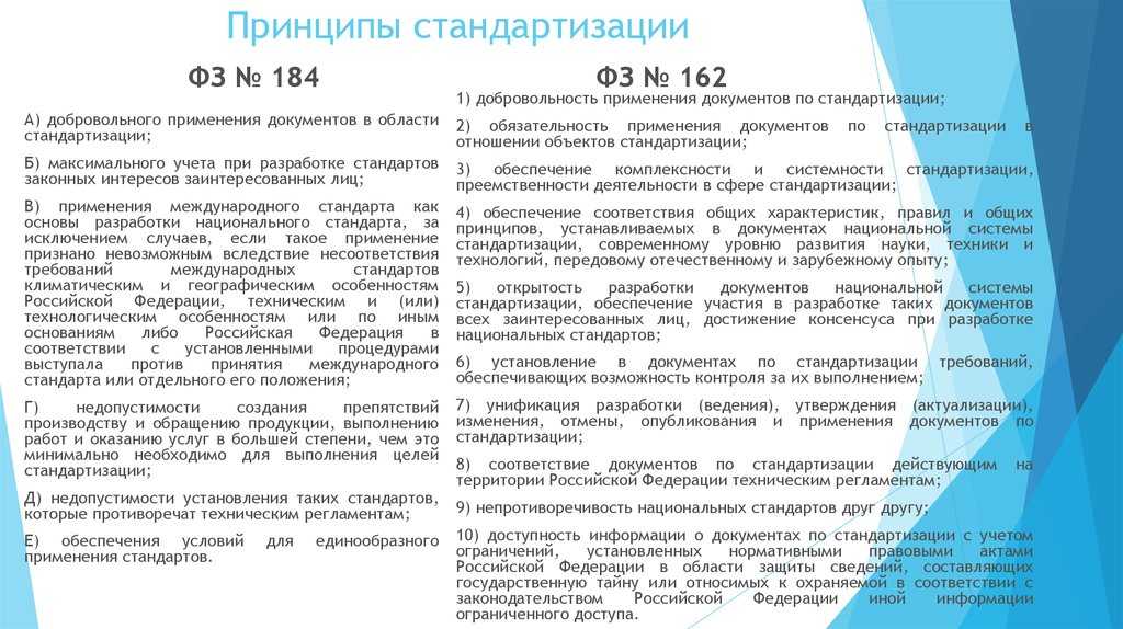 - Динамичность обеспечивается периодической проверкой стандартов, внесением в них изменений, отменой НД.