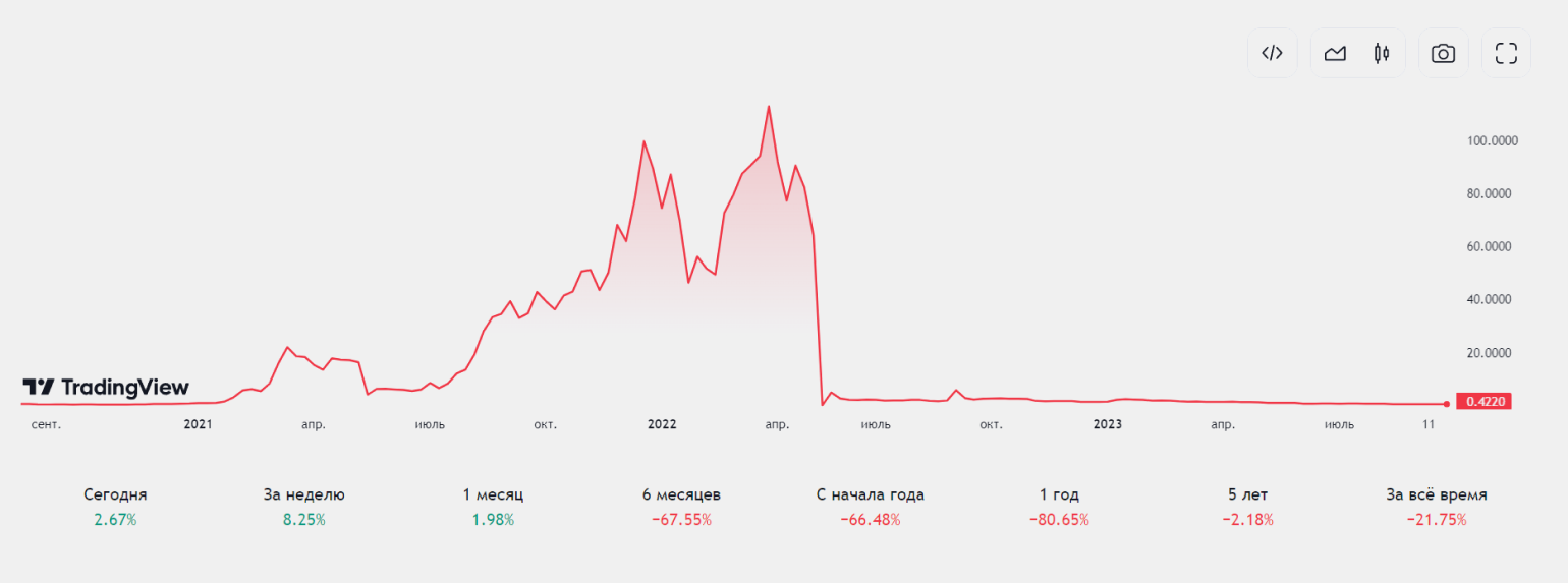 Крах криптовалюты Terrа в 2022 годуСкриншот: TradingView