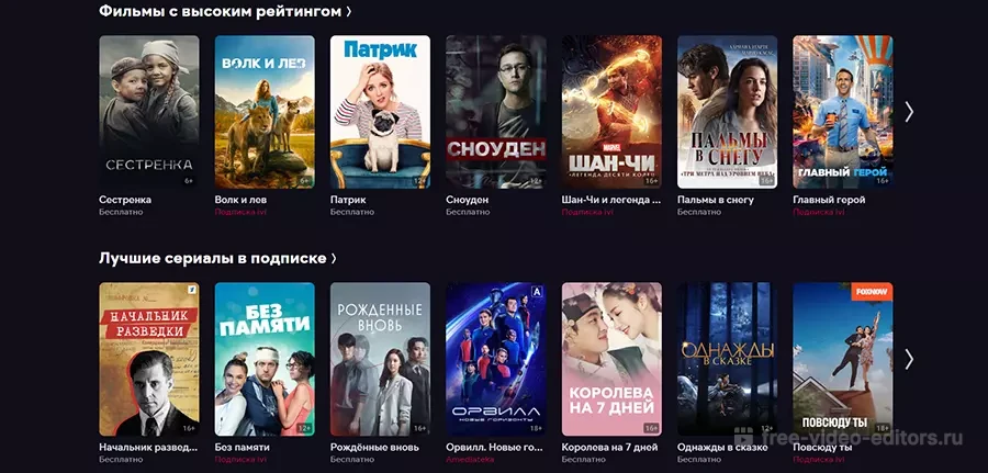Стоимость: бесплатно с рекламой; подписка от 197 рублей в месяц; покупка и прокат отдельных фильмов.