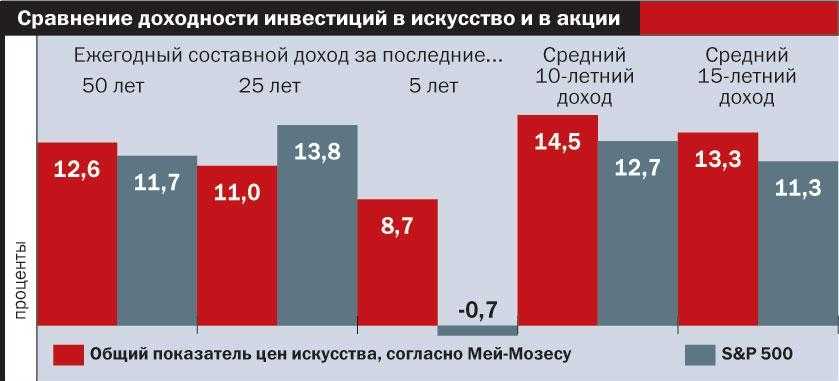 Диаграмма доходности на дистанции: предметы искусства и акции