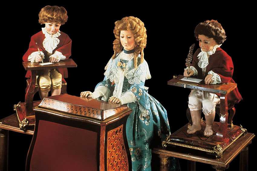 - «Писарь» – автоматическая фигура мальчика, содержащая около 4 000 деталей, была способна написать любой текст из 40 знаков, самостоятельно макая перо в чернильницу;