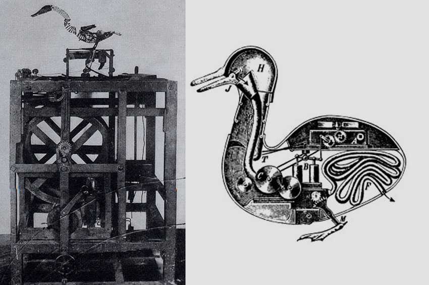 - механическая утка, способная взмахивать крыльями, клевать зерно с руки и даже испражняться;